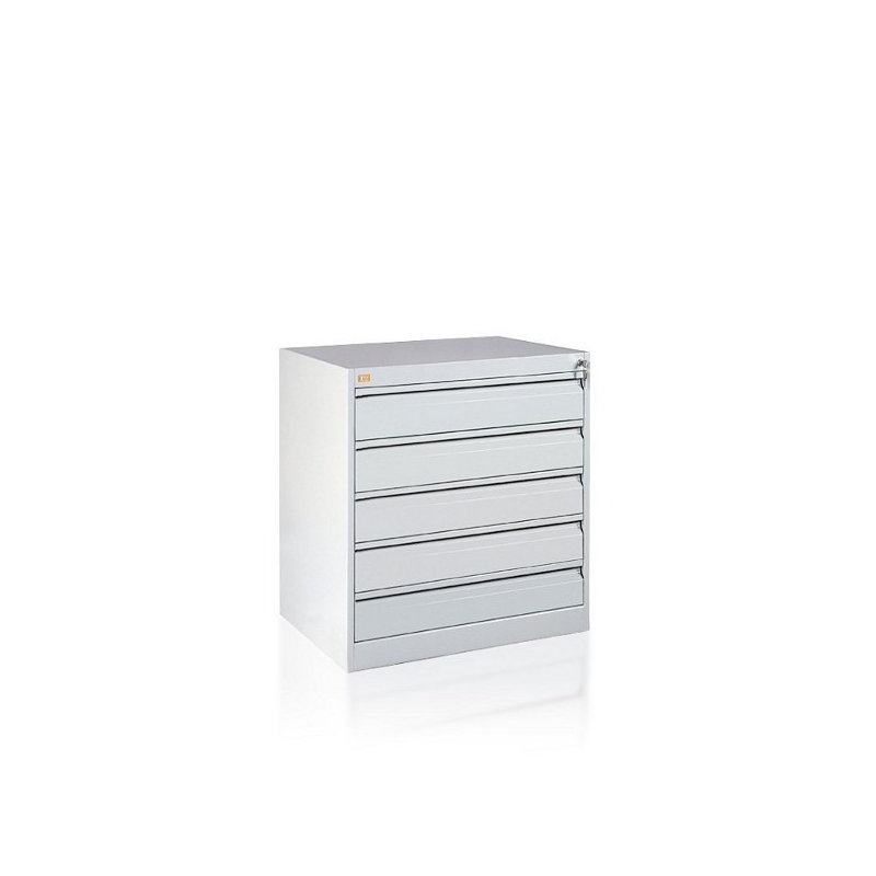 Pięcioszufladowa szafa przystosowana do przechowywania indeksów studenckich w rzędach. Szafa wykonana jest z blachy czarnej o grubości 0,6 – 2 mm, malowana farbami proszkowymi (epoksydowo-poliestrowymi) w kolorze RAL 7035. Szuflady posiadają pięć rzędów do ułożenia indeksów. Przesuwają się po prowadnicach z łożyskami kulkowymi z blokadą zabezpieczającą przed wypadnięciem. Całość zamykana jednym centralnym zamkiem. Szafa posiada blokadę pozwalająca na wysunięcie tylko jednej szuflady, co zachowuje jej stabilność.
