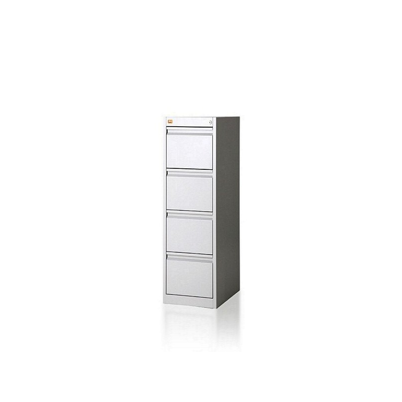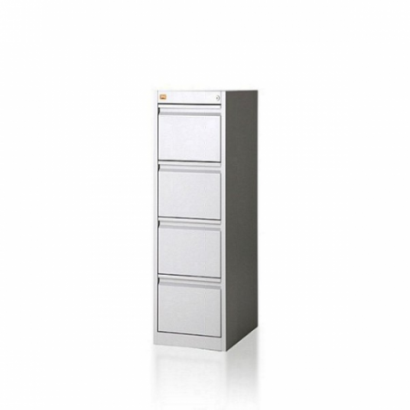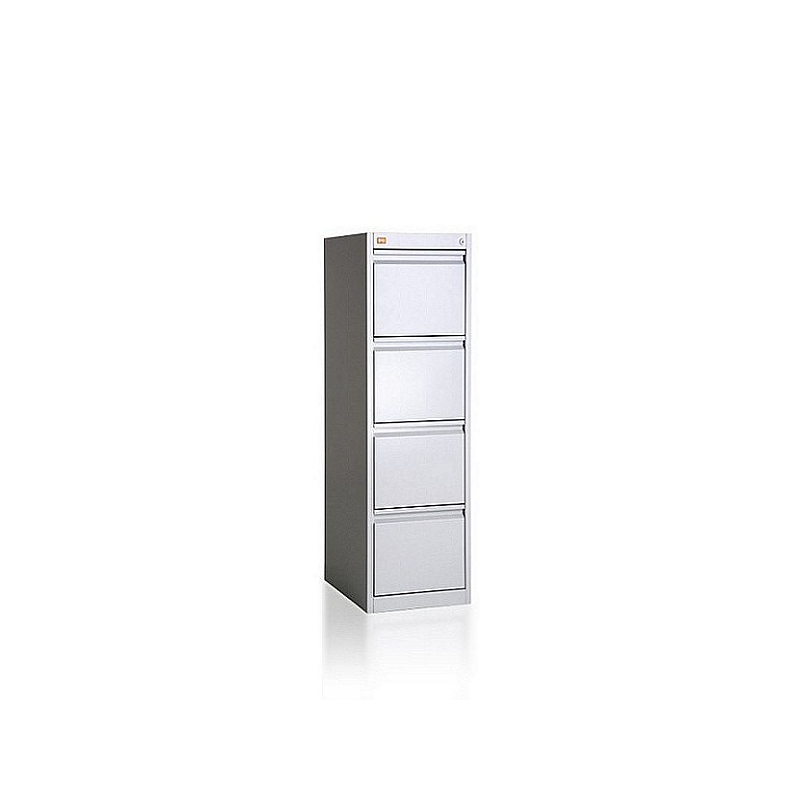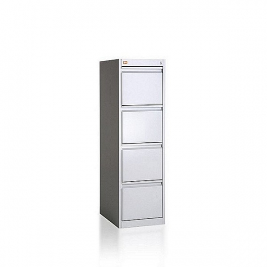 Czteroszufladowa szafa przystosowana do przechowywania segregatorów oraz teczek zawieszkowych formatu A-4 w poziomie. Wykonana jest z blachy czarnej o grubości od 0,6mm- 2 mm, malowana farbami proszkowymi (epoksydowo-poliestrowymi) w kolorze RAL 7035. Szuflady przesuwają się po prowadnicach teleskopowych z blokadą zabezpieczającą przed wypadnięciem. Całość zamykana jednym centralnym zamkiem. Maksymalne obciążenie prowadnic szuflady: 45kg. Szafa posiada blokadę pozwalająca na wysunięcie tylko jednej szuflady, co zachowuje jej stabilność.
