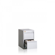 Dwuszufladowa szafa przystosowana do przechowywania segregatorów oraz teczek zawieszkowych formatu A-4 w poziomie.