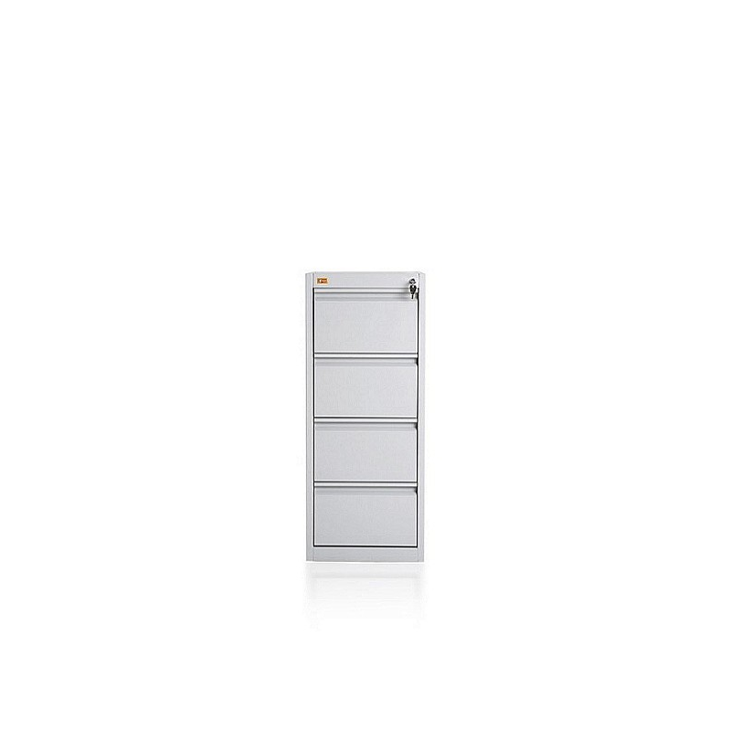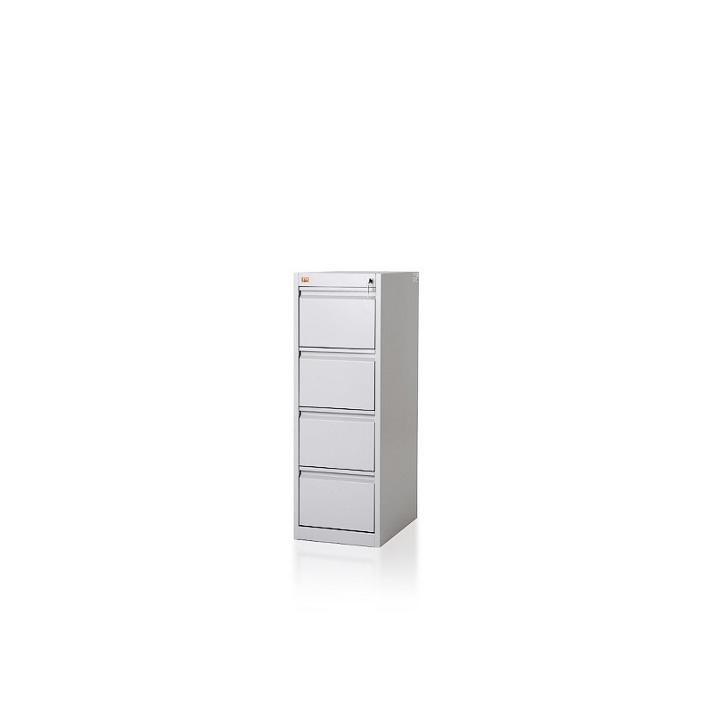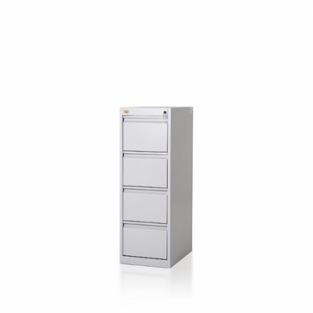 \nCzteroszufladowa szafa przystosowana do przechowywania kartotek formatu A-5. Szuflada posiada przegrodę umożliwiającą ułożenie dwóch rzędów kartotek w pionie. Wykonana jest z blachy czarnej o grubości od 0,6mm- 2 mm, malowana farbami proszkowymi (epoksydowo-poliestrowymi) w kolorze RAL 7035. Szuflady przesuwają się po prowadnicach teleskopowych z blokadą zabezpieczającą przed wypadnięciem. Całość zamykana jednym centralnym zamkiem. Maksymalne obciążenie prowadnic szuflady: 45kg. Szafa posiada blokadę pozwalająca na wysunięcie tylko jednej szuflady, co zachowuje jej stabilność.
