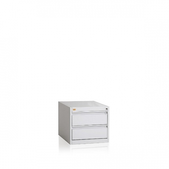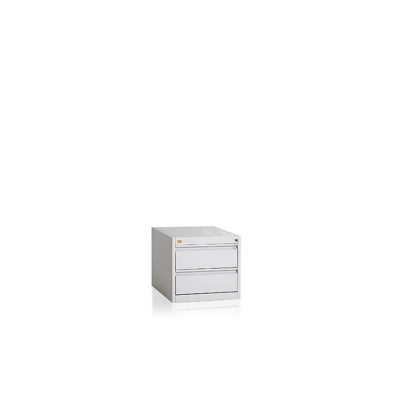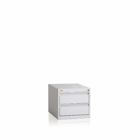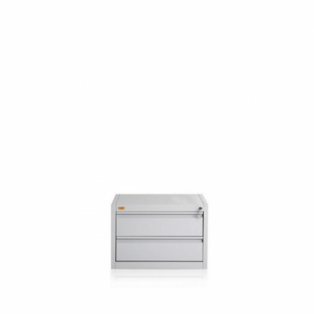 Dwuszufladowa szafa przystosowana do przechowywania kartotek formatu A-5. Szuflada posiada przegrodę umożliwiającą ułożenie dwóch rzędów kartotek w poziomie. Wykonana jest z blachy czarnej o grubości od 0,6mm- 2,0 mm, malowana farbami proszkowymi (epoksydowo-poliestrowymi) w kolorze RAL 7035. Szuflady przesuwają się po prowadnicach teleskopowych z blokadą zabezpieczającą przed wypadnięciem. Całość zamykana jednym centralnym zamkiem. Maksymalne obciążenie prowadnic szuflady: 80kg. Szafa posiada blokadę pozwalająca na wysunięcie tylko jednej szuflady, co zachowuje jej stabilność.