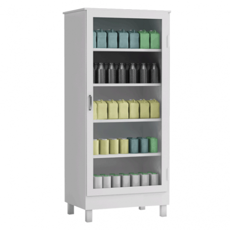 Szafa przeciwpożarowa przeznaczona do przechowywania cieczy palnych i aerozoli. Znajduje swoje zastosowanie w sklepach spożywczych, na stacjach benzynowych, w marketach, w sklepach z farbami. Bardzo łatwa do przestawiania wózkiem do palet. Dodatkowo wyposażona w nóżki. Standardowy kolor RAL 9002.