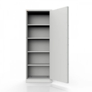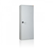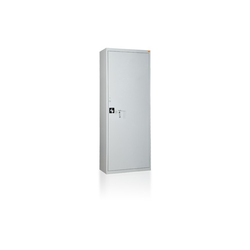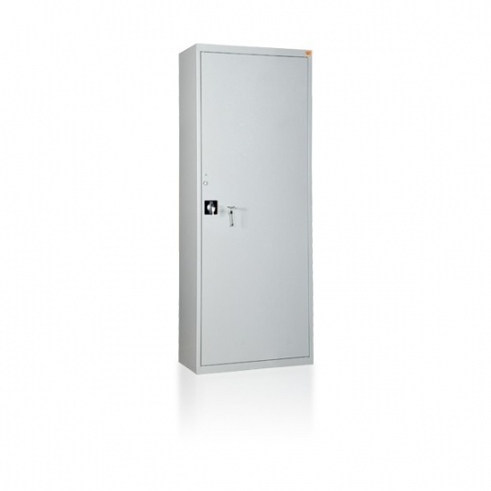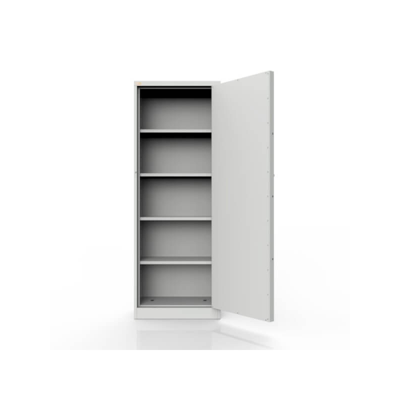Wzmocniona szafa biurowa przeznaczona jest do przechowywania dokumentów niejawnych. Posiada jedno skrzydło drzwi uchylnych zawieszone na zawiasach kołkowych. Wyposażona jest w 4 półki przestawne co 90mm,. Wykonana jest z blachy czarnej o grubości 1mm, malowana farbami proszkowymi (epoksydowo-poliestrowymi) w kolorze RAL 7035 (jasny popiel). Zamykana zamkiem kluczowym mechanicznym klasy A (wg normy EN 1300) Typ 2 (wg Rozporządzenia Rady Ministrów z dnia 29 maja 2012 r.), który zabezpiecza przed działaniem destrukcyjnym w tym przed przewierceniem, ryglujące w 4 punktach. Szafa posiada w dnie dwa otwory do zamocowania do podłogi. Drzwi wyposażone są w kołki do plombowania. Udźwig półki: 50 kg.