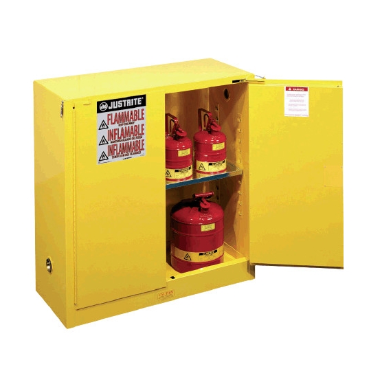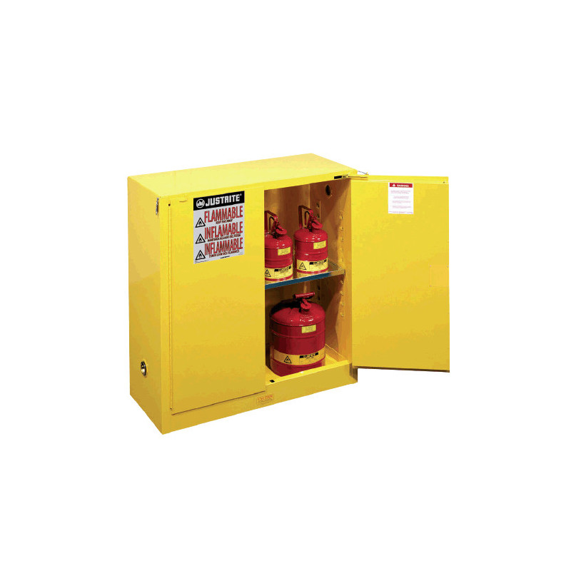 Szafa wysokiego bezpieczeństwa do składowania substancji łatwopalnych w miejscu pracy. Całość wykonana ze stali nierdzewnej, ocynkowanej i pomalowanej proszkowo. Szafa wyposażona w automatyczny samozamykąjacy się mechanizm w razie pożaru. Gwarantuje bezpieczne magazynowanie materiałów łatwopalnych. Zmniejsza zagrożenie pożarowe, a co za tym idzie ochronę personelu i mienia. Odblaskowe naklejki ostrzegawcze pozwalają na szybkie dostrzeżenie punktów zagrożenia w warunkach ciemności lub zadymienia.