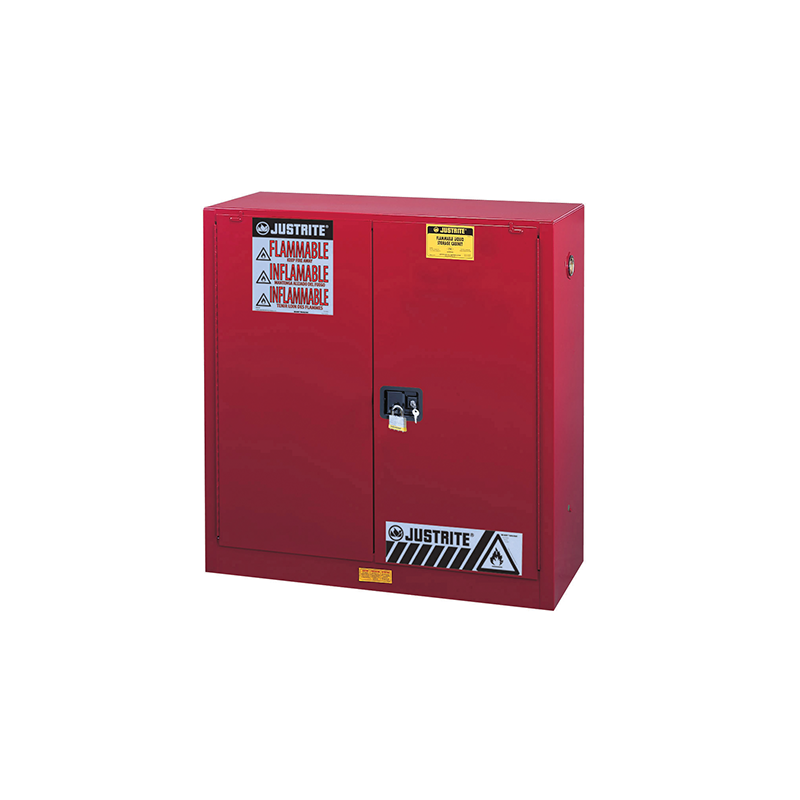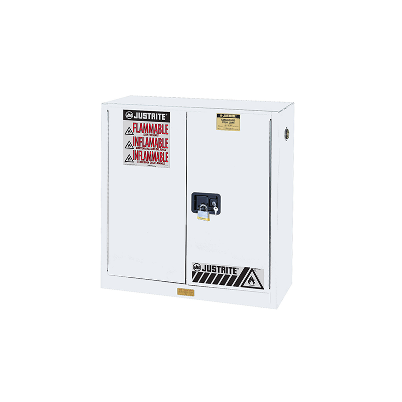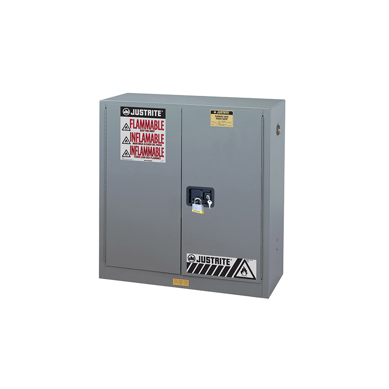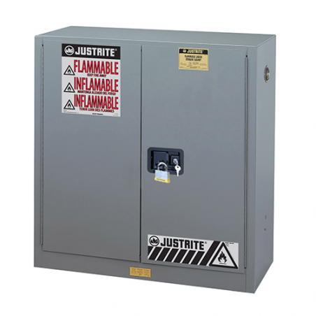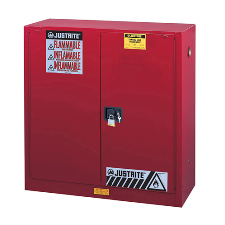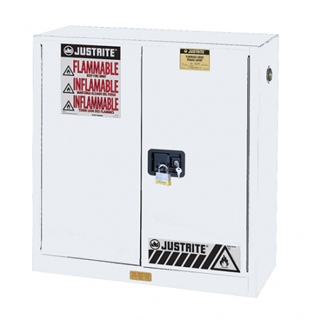 Szafa wysokiego bezpieczeństwa do składowania substancji łatwopalnych w miejscu pracy. Całość wykonana ze stali nierdzewnej, ocynkowanej i pomalowanej proszkowo. Gwarantuje bezpieczne magazynowanie materiałów łatwopalnych. Zmniejsza zagrożenie pożarowe, a co za tym idzie ochronę personelu i mienia. Odblaskowe naklejki ostrzegawcze pozwalają na szybkie dostrzeżenie punktów zagrożenia w warunkach ciemności lub zadymienia.