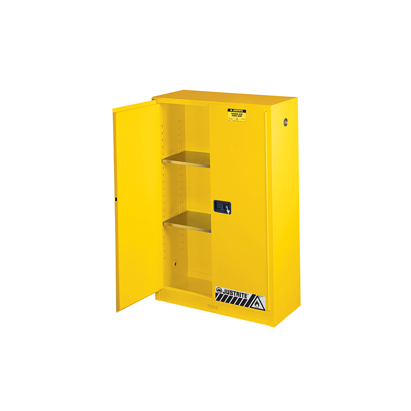 Całość wykonana ze stali nierdzewnej, ocynkowanej i pomalowanej proszkowo. Drzwi zamykane ręcznie. Gwarantuje bezpieczne magazynowanie materiałów łatwopalnych. Zmniejsza zagrożenie pożarowe a co za tym idzie ochronę personelu i mienia. Poprawia uporządkowanie i rozdzielenie niebezpiecznych substancji chemicznych. Zapewnia zgodność magazynowania z obowiązującymi przepisami. Poprawia jakość i wydajność pracy poprzez umożliwienie przechowywania płynów w pobliżu miejsca ich zastosowania. Zastosowanie jaskrawych kolorów ostrzega pracowników lokalizacji niebezpiecznych płynów. Jaskrawe kolory ostrzegają strażaków w razie pożaru o miejscu przechowywania substancji łatwopalnych. Odblaskowe naklejki ostrzegawcze pozwalają na szybkie dostrzeżenie punktów zagrożenia w warunkach ciemności lub zadymienia.