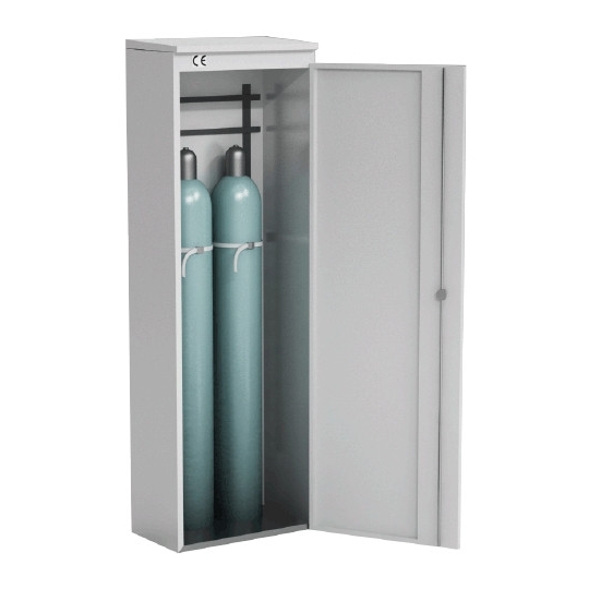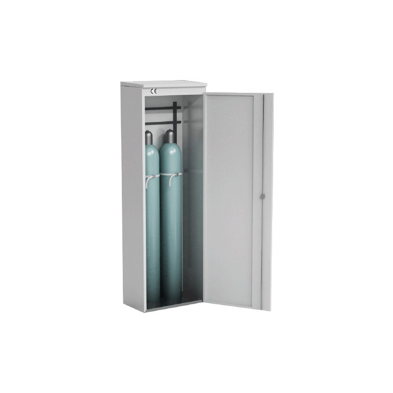 Szafa do magazynowania butli gazowych pod ciśnieniem wewnątrz i na zewnątrz budynków. Można stosować w budynku, w zależności od obowiązujących norm. Na zewnątrz ocynkowana blacha stalowa, lakierowana proszkowo jasnoszara. Wysoka odporność na korozję. Masywna podłoga, aby uniknąć uszkodzeń powstałych na skutek uderzeń. Wentylacja, dzięki otworom w drzwiach i pod ochronnym sufitem szafy, przygotowanym specjalnie do podłączenia pod istniejący system wentylacyjny.