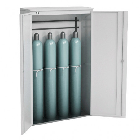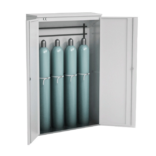 Szafa do magazynowania butli gazowych pod ciśnieniem wewnątrz i na zewnątrz budynków. Można stosować w budynku, w zależności od obowiązujących norm. Na zewnątrz ocynkowana blacha stalowa, lakierowana proszkowo jasnoszara. Wysoka odporność na korozję. Masywna podłoga, aby uniknąć uszkodzeń powstałych na skutek uderzeń. Wentylacja, dzięki otworom w drzwiach i pod ochronnym sufitem szafy, przygotowanym specjalnie do podłączenia pod istniejący system wentylacyjny.