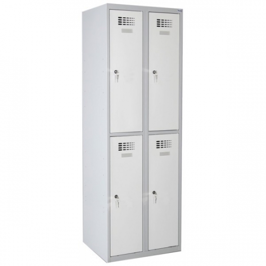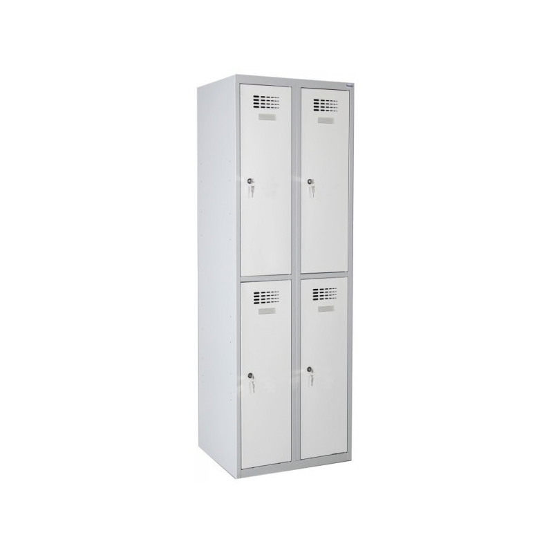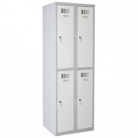 \n \n \nModel SUS 422 W to szafa z dwoma skrytkami w pionie rozmieszczonymi w dwóch kolumnach. Każda skrytka zamykana jest przy pomocy oddzielnego zamka ryglującego drzwi w jednym punkcie. Cała konstrukcja szafy wraz z drzwiami i pozostałymi elementami wykonana została z blachy stalowej o grubości 0,5 mm i posiada dodatkowe wzmocnienia w postaci profili zamkniętych, zamontowanych w drzwiach, ścianach oraz wieńcach dolnym i środkowym. \n \nSkrytki wyposażone zostały w drążki ubraniowe wraz z haczykami, zaś po zewnętrznej stronie drzwi przymocowane zostały samoprzylepne wizytowniki, umożliwiające opisanie skrytek. Ponadto szafa SUS 422 W posiada nowoczesną perforację wykonaną w drzwiach szafy, która pozwala na prawidową wentylację wnętrza szafy. Szafa skrytkowa SUS 422 W malowana jest na kolory palety Ral w technologii proszkowej, która to zapewnia podwyższoną odporność korozyjną blachy.