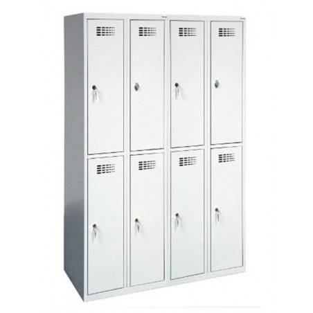 \n \n \nSzafy skrytkowe SUS W firmy Malow to zmodernizowana wersja szaf o zaawansowanej konstrukcji z dodatkowymi wzmocnieniami. Produkty z tej linii charakteryzują się wyjątkową wytrzymałością, stabilnością i odpornością na wstrząsy. Dzięki swojej uniwersalności i różnorodności - szeroki wybór wersji wymiarowych oraz kolorystycznych - szafy skrytkowe stosowane są na szeroką skalę w różnego rodzaju pomieszczeniach sojclanych: od szkolnych i przedszkolnych, przez szatnie ośrodków sportowych, aż po pomieszczeń pracowniczych w biurach i przedsiębiorstwach. \n \nSzafa skrytkowa SUS 342 W posiada cztery kolumny z dwoma skrytkami w każdej, co zapewnia odpowiednią przestrzeń w każdej skrytce do przechowywania odzieży wierzchniej, torebki czy plecaka oraz innych rzeczy osobistych. Model SUS 342 W może być dodatkowo wyposażona w nóżki, cokół odgraniczające wieniec dolny od podłogi lub w podstawę z ławką wysuwaną albo stałą, która pozwala na komfortowe zmienienie odzieży czy butów. \n \n \nSpecyfikacja