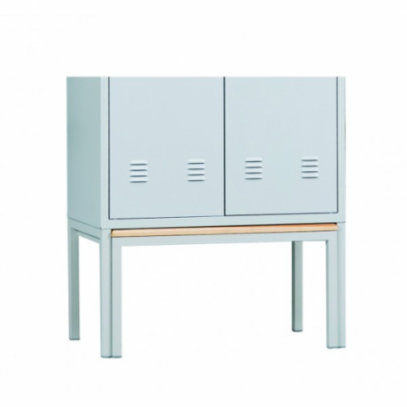 Skrytki rozmieszczone są w trzech kolumnach po dwa rzędy. W każdej ze skrytek umieszczona jest półka na przybory szkolne.