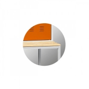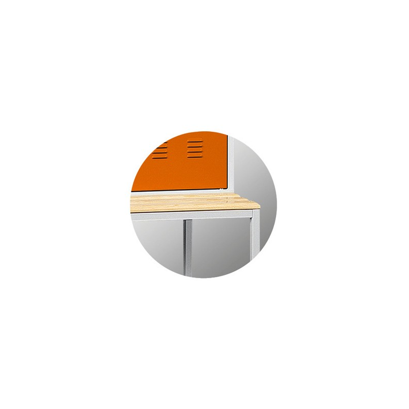 Skrytki rozmieszczone są w dwóch kolumnach po dwa rzędy. W każdej ze skrytek umieszczona jest półka na przybory szkolne.