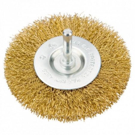 Szczotka druciana tarczowa z trzpieniem 100 mm, drut karbowany, mosiądzowany