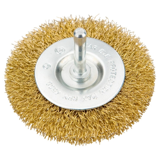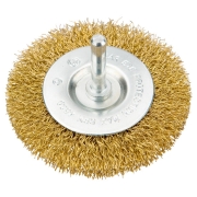 Szczotka druciana tarczowa z trzpieniem 75 mm, drut karbowany, mosiądzowany