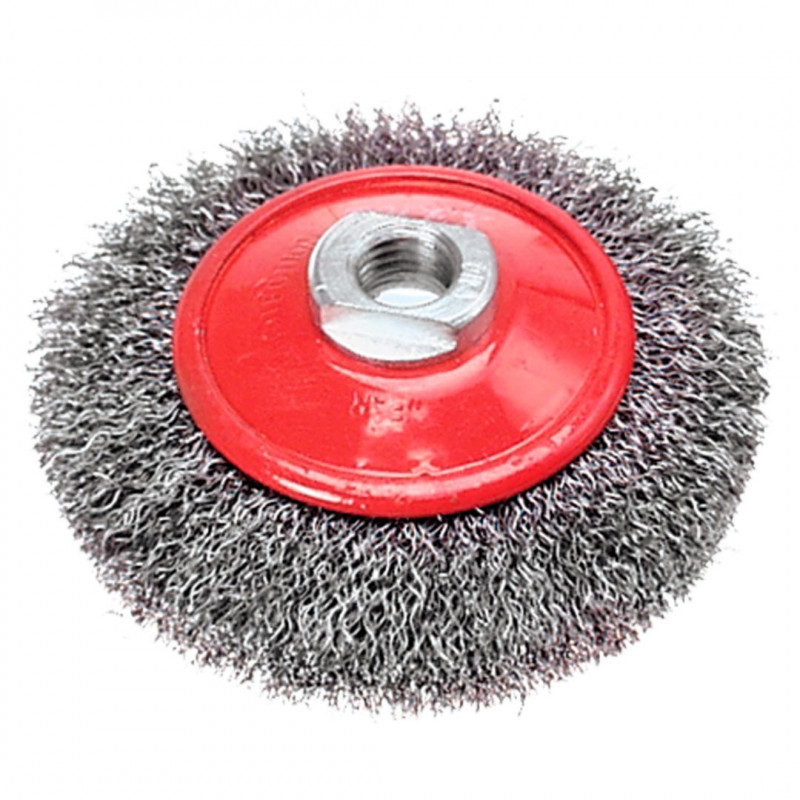 Szczotka druciana tarczowa odgięta 100 mm x M14, drut karbowany