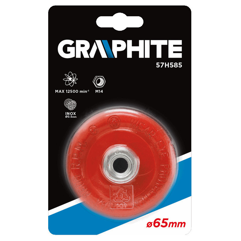 Szczotka druciana doczołowa wzmacniana, 65 mm x M14, INOX, drut splatany O 0.5 mm