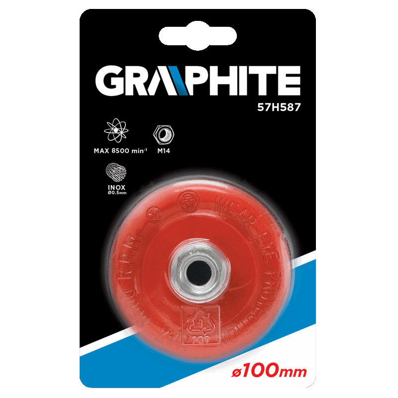 Szczotka druciana doczołowa wzmacniana 100 mm x M14, INOX, drut splatany O 0.5 mm