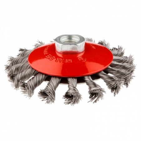 Szczotka druciana tarczowa odgięta 115 mm x M14, INOX, drut splatany O 0.5 mm