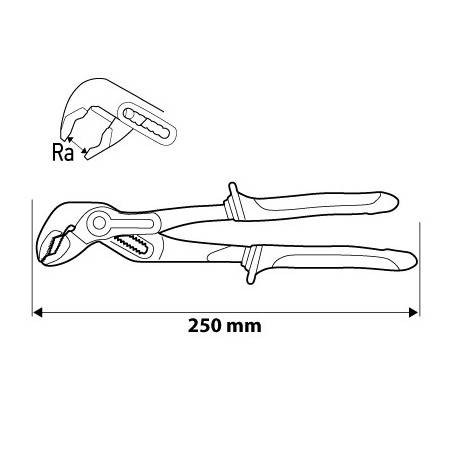 Szczypce do rur 250 mm, zakres 0-42 mm stal CrV, DIN 8976, TÜV, przegub zębatkowy