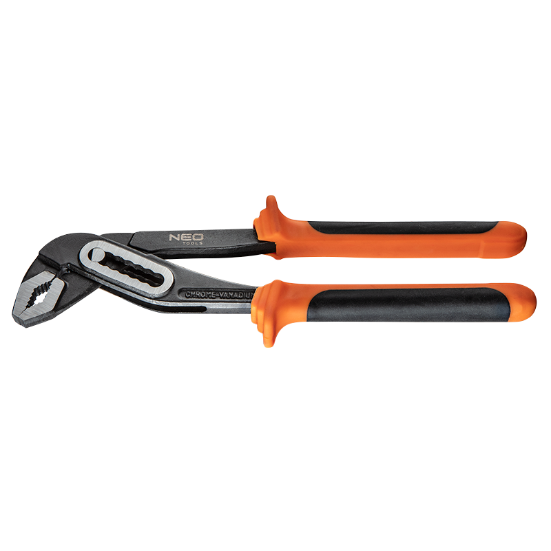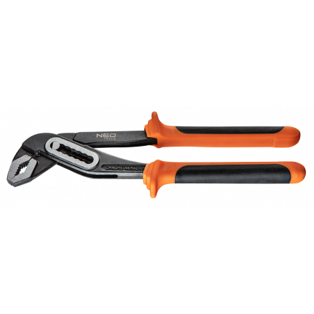 Szczypce do rur 250 mm, zakres 0-36 mm, nastawny przegub ślizgowy, szczęki polerowane, stal CrV, DIN 8976, dwumateriałowy uchwyt, TÜV