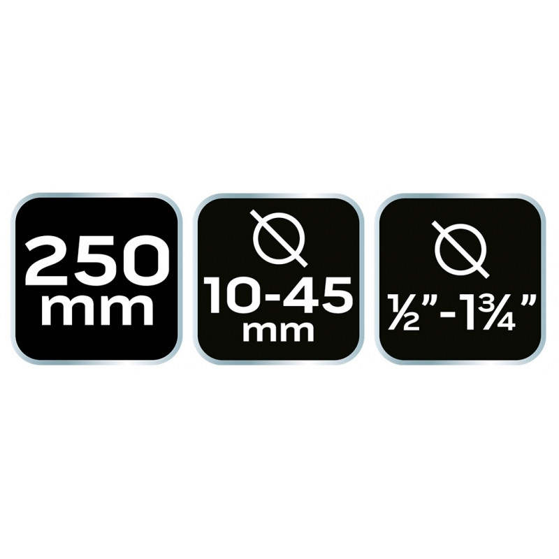 Szczypce do rur 250 mm, zakres 10-45 mm, stal węglowa hartowana, przegub przestawny 7 pozycji