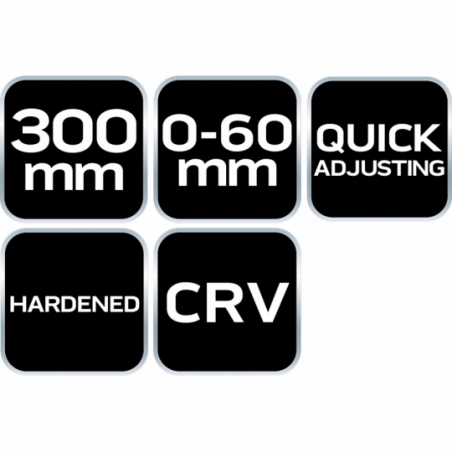 Szczypce do rur długość 300 mm, zakres szczęk 0-60 mm, mechanizm szybkonastawny, stal chromowo-wanadowa hartowana, miekki uchwty z PVC