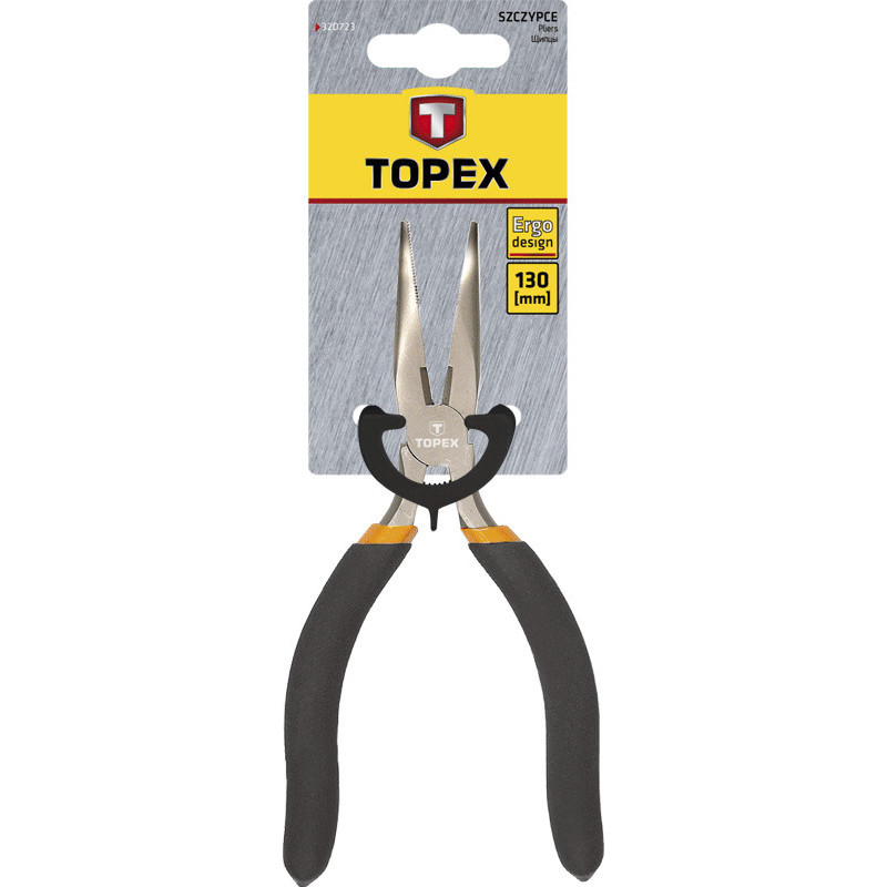 Szczypce precyzyjne wydłużone wygięte 130 mm, elastyczna wykładzina rękojeści, sprężynka rozpierająca