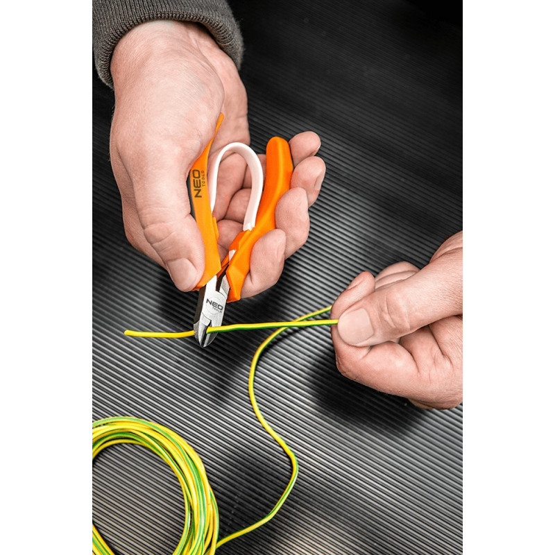 Szczypce precyzyjne boczne 110 mm, krawędzie cięcia hartowane indukcyjnie, nylonowa sprężyna, uchwyt dwumateriałowy, TÜV
