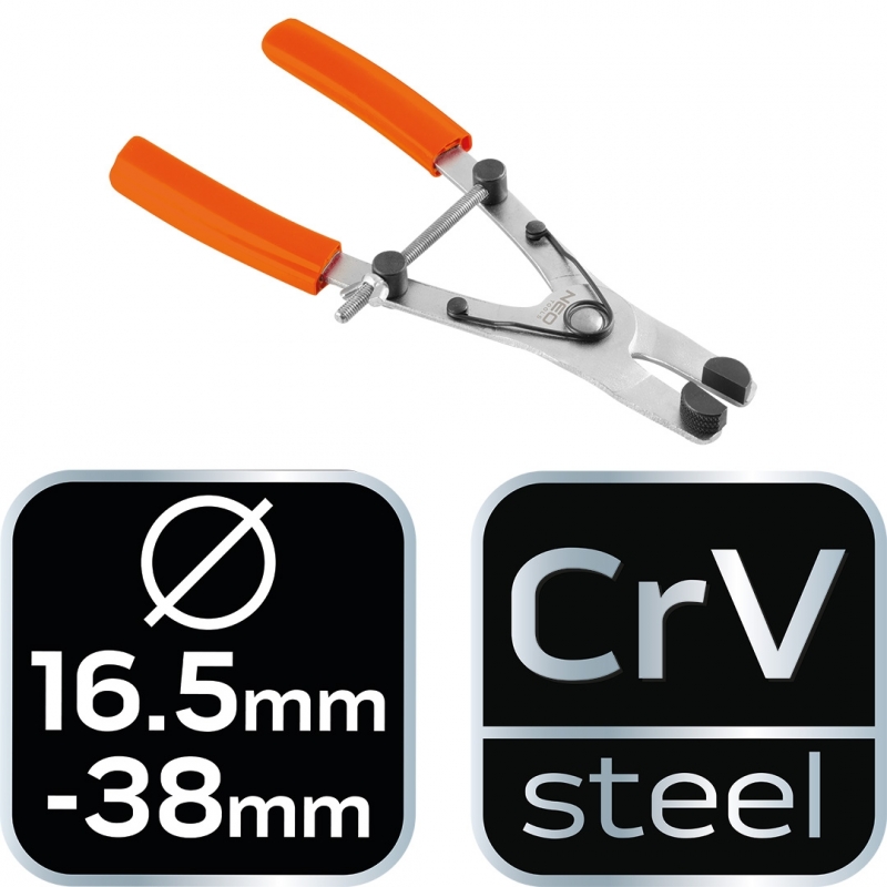Szczypce do wyciągania tłoczków hamulcowych, bezinwazyjny prosty i szybki demontaż tłoczków, dodatkowa śruba zwiększająca siłę docisku szczypiec, zakres: Ø16,5 - 38 mm;