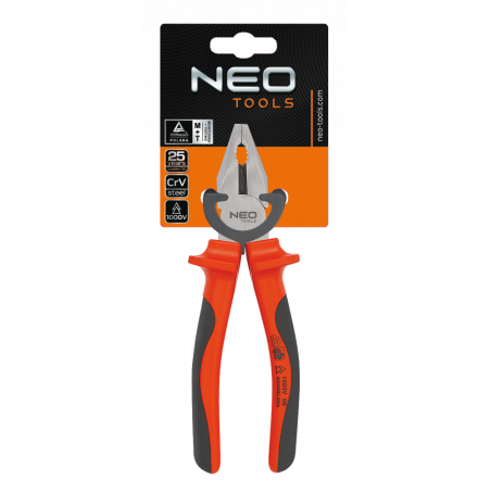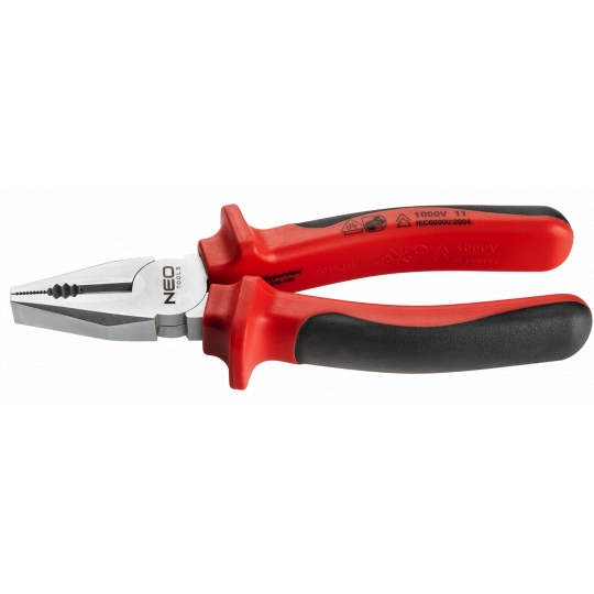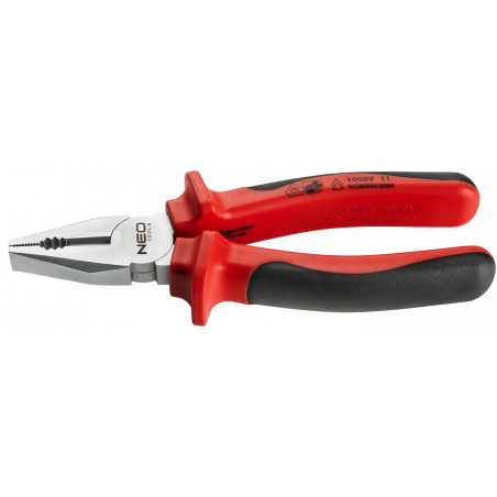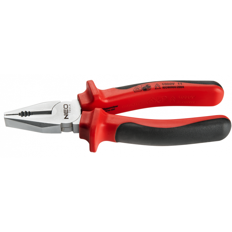 Szczypce uniwersalne 1000V, 160 mm, twardość powierzchni tnących 55-60 HRc, stal CrV, z certyfikatem, DIN 5746, uchwyt dwumateriałowy, TÜV