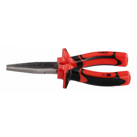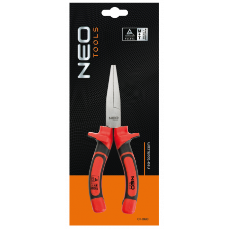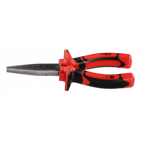 Szczypce wydłużone płaskie 160 mm 1000V, polerowane, rękojeść dwumateriałowa, stal CrV, certyfikat TÜV