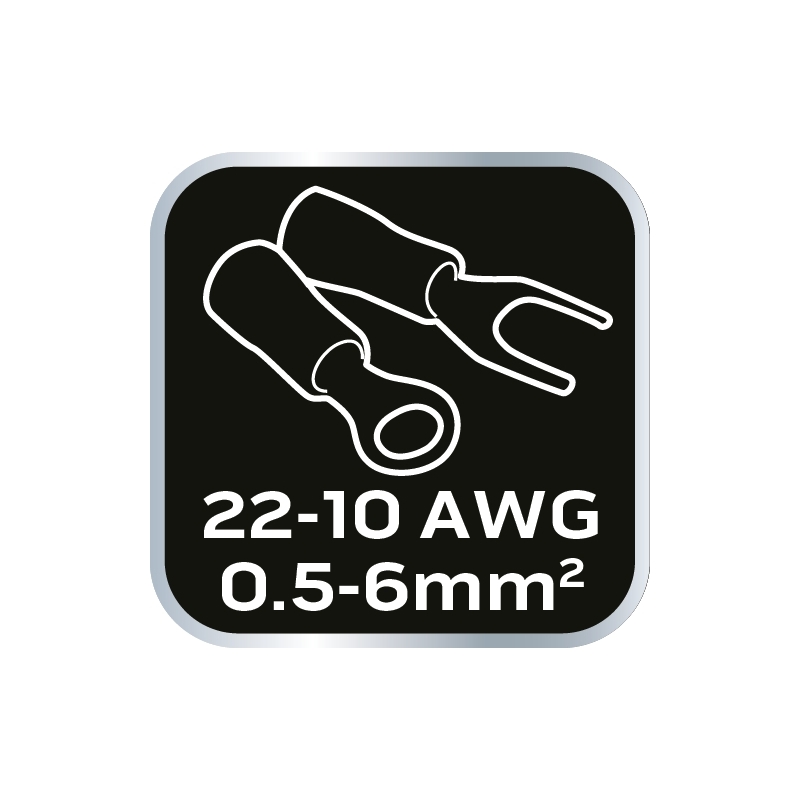 Zaciskarka końcówek tulejkowych, średnica tulejek: 6 - 16 mm2, 4 szczęki, uchwyty PVC, waga 0.52 kg, długość 210 mm