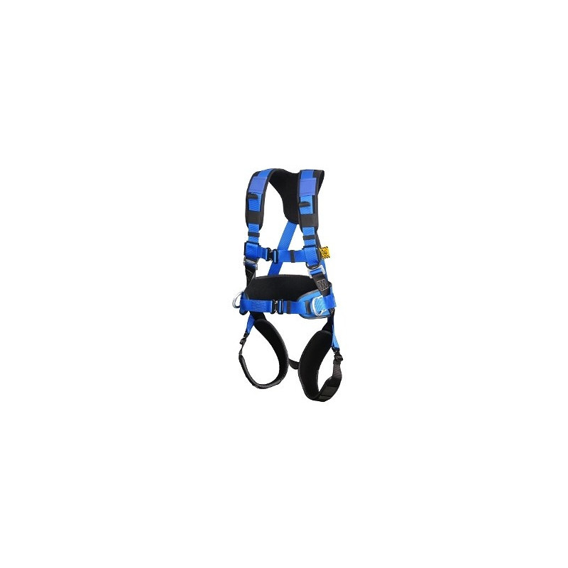Szelki z podkładkami na barki i uda oraz pasem biodrowym, wyposażone w tylną klamrę zaczepową; regulacja pasów udowych, pasów barkowych i pasa piersiowego; pas do pracy “w podparciu” z bocznymi klamrami zaczepowymi zgodny z normą PN-EN 358. Automatyczne klamry łącząco-regulacyjne.