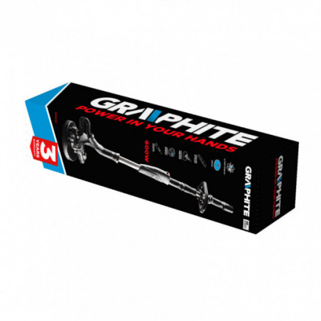 Szlifierka do gipsu 600W, obroty 600 - 1500 min⁻¹, dł. szlifierki: 1100 - 2000 mm, średnica tarczy roboczej: 225 mm, (LxWxH) złożona/rozłożona 1100/2000 x 250 mm, masa 5,5 kg, akcesoria: papier ścierny (różna gradacja) - 14 szt, wkrętak, wąż ssący, przedłużka wysięgnika, tuleje redukcyjne - 3 szt, pas naramienny, wkrętak, klucz sześciokątny