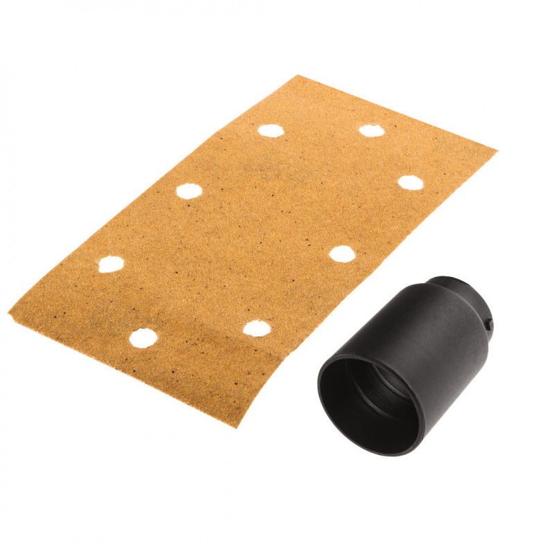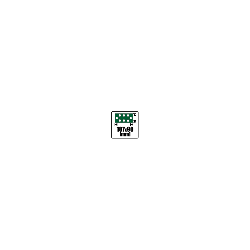 Szlifierka oscylacyjna 150W, stopa 90x187 mm , obroty 12 000 min⁻¹, oscylacje 24 000 min⁻¹, amplituda oscylacji 2 mm, papier ścierny 93 x 230 mm, (LxH) 240 x 160 mm, masa 1.15 kg, akcesoria: papier ścierny