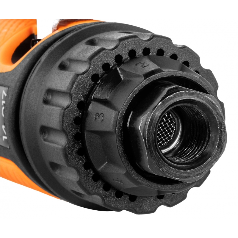Przecinarka pneumatyczna, tarcza 75 mm, ciśnienie maks. 6.3 bar, średnie zużycie powietrza 115 l/min., 18000 obr.-1., złącze 1/4", waga 0,82 kg, CE