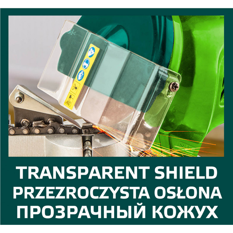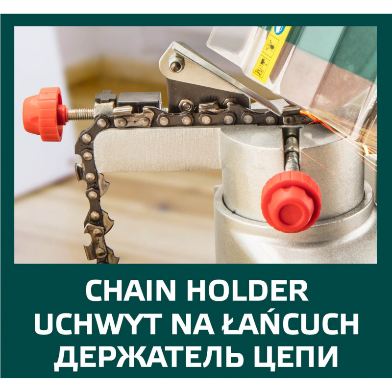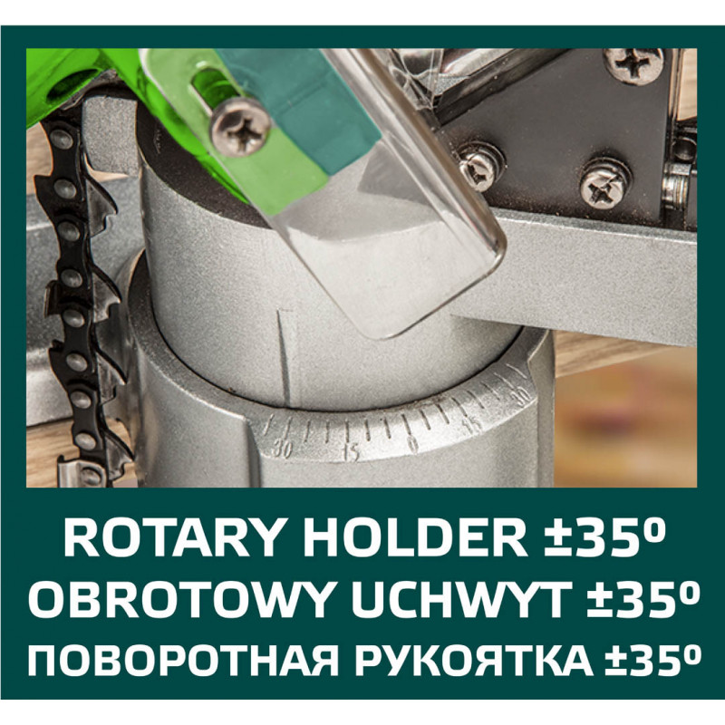 Ostrzałka do łańcuchów 180W, średnica tarczy 100/10.2 mm; obroty 6300 min ⁻¹; zakres kąta ostrzenia ±35º; masa 2.1 kg;