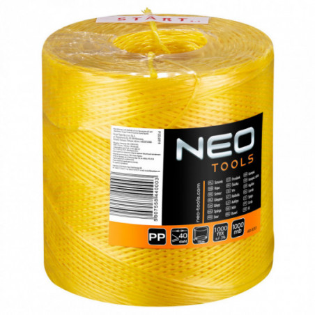 Sznurek do mocowania wełny mineralnej 1000 m, sznurek polipropylenowy 1000m/kg, masa liniowa - 1000 tex +/- 3%, siła rozrywająca nie mniejsza niż 40 daN, skręt 36Z, waga nominalna 1kg, ilość metrów w kłębku 1000mb, średnica kłębka 15cm, wysokość kłębka 15 cm