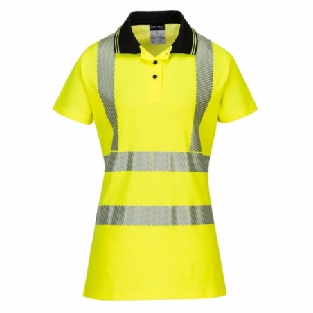 • Nowoczesna damska ostrzegawcza koszulka polo łączy oddychającą tkaninę Cotton Comfort z nową taśmą HiVisTex Pro. Koszulka oferuje wyjątkową swobodę ruchów dzięki wgrzewanym i elastycznym taśmom odblaskowym.
