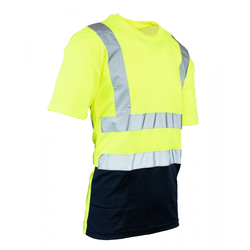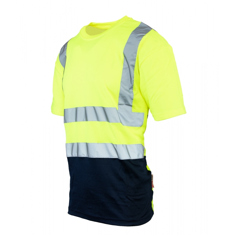.Budowa/szycie: T-shirt ostrzegawczy z krótkim rękawem, wytrzymałe szwy, szyte mocną nicią, elastyczny ściągacz, wstawki kolorystyczne,