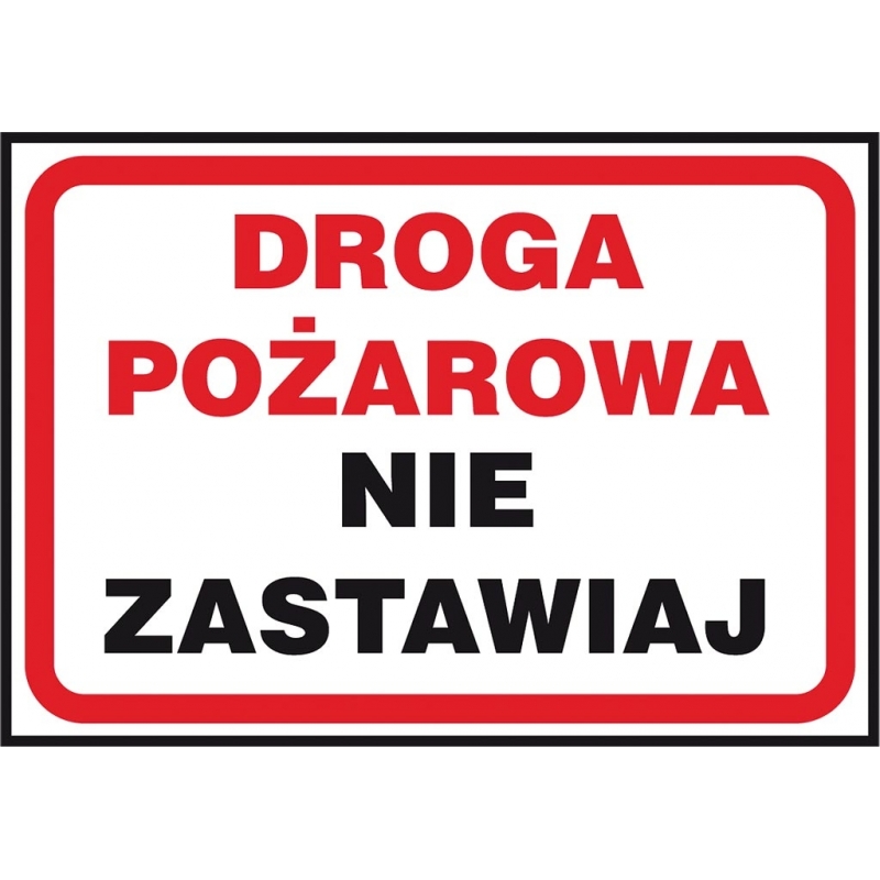 Znak ochrony ppoż. „Droga pożarowa nie zastawiaj”. - format znaku L w rozmiarze 250x350 - wykonany z: PT - płyta PCV