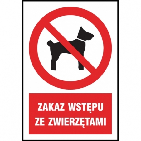 Znak BHP „Zakaz wstępu ze zwierzętami”.