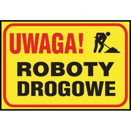 Tablice budowlane „Uwaga! Roboty drogowe”.