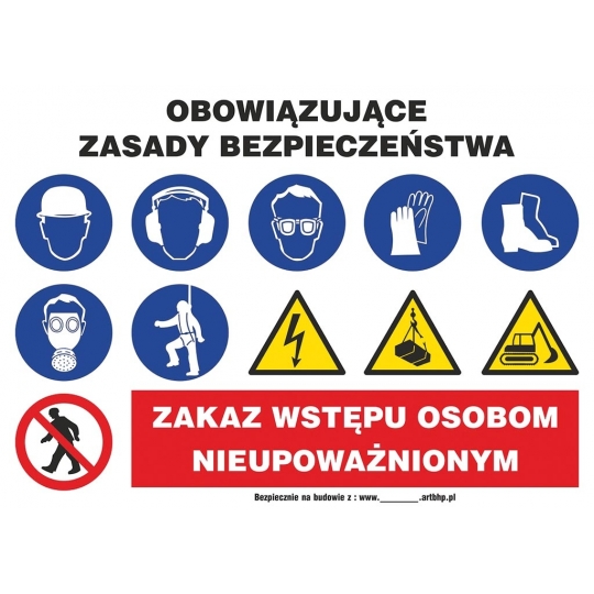 Znak „Obowiązujące zasady bezpieczeństwa” - format znaku J w rozmiarze 700x500 - wykonany z płyty PCV