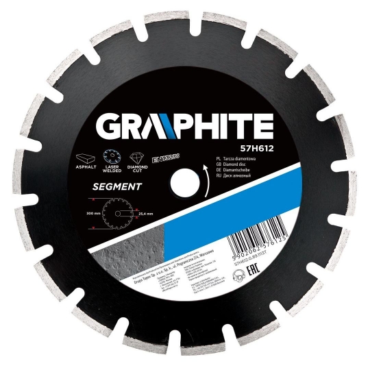 Tarcza diamentowa 300 x 22.2 mm, segmentowa, spawana laserowo, segment 10 x 3.2 mm