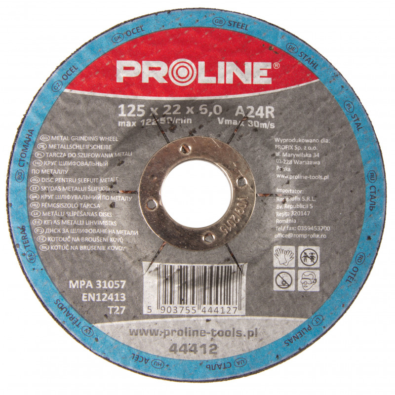TARCZA DO SZLIFOWANIA METALU, T27, 115x6.0x22A24R PROLINE - 44411