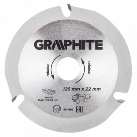 Tarcza do cięcia drewna z ograniczeniem posuwu, 125 x 22.2 x 2.8 mm, stal manganowa MN65, zęby z nakładkami z węglika spiekanego YG6A