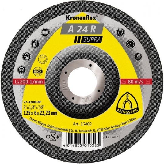 TARCZA DO SZLIFOW.STAL A24RSUPR.125*6,0*22 WYP.SZT.1(45434A) - KL13402
