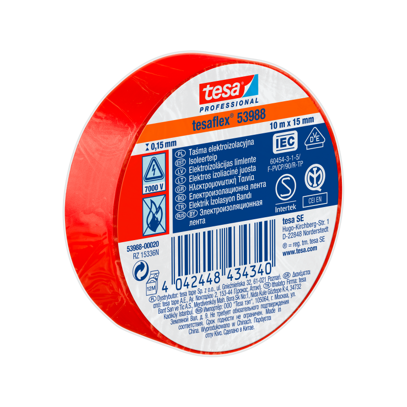 TAŚMA ELEKTROIZOL.5000V PCW 10M:15MM CZERWONA (H5394703) - H5398820