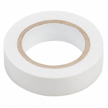 Taśma izolacyjna biała, materiał PVC, wymiary 15 mm x 0.13 mm x 10 m, elastyczna, funkcje ochronne: przed uszkodzeniami mechanicznymi (ścieranie, zginanie, itp.), fizycznymi (promieniowanie UV, procesy starzenia), chemicznymi (woda oraz różnego rodzaju chemikalia)